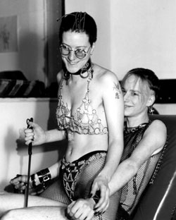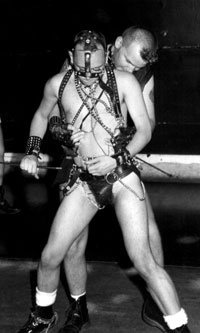 | With the Masquerade (the club), our intention was to provide a worthy and enjoyable Fetish club outside London. A strict dress code was insisted upon, and adhered to, at the events. Rubber, Leather, PVC, Fetish glamour and TV/cross-dressing are all acceptable, as were any fantasies people may wish to live out. Our parties have been attended by people representing every aspect of the fetish scene, from those purely interested in the fashion side, and the imagery, to those deeply involved with the S & M , bondage, discipline and slavery aspects. Groups, couples and singles were made equally welcome. However, everyone was respected, and accepted, for who they where , and what they wanted to be. |