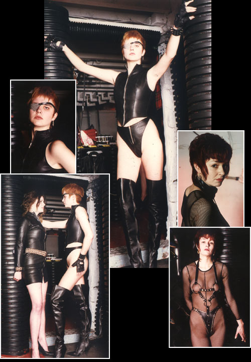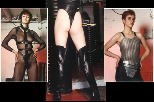 | This contrast is carried through into the Urban range of clothing also available therein. Another brilliantly deviant inspiration of Derek Bielby. Latex printed clothing in circuit board and spiky spine prints use the strange combination of harsh mechanical imagery to bedeck the soft curves of the female form. The Urban divers is also available in leather with its connotations of rebellion and street wise violence. |