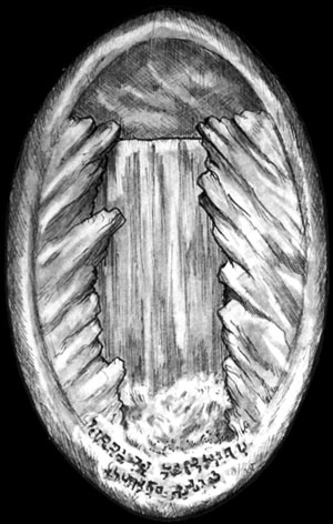 I was standing in front of a pair of large wrought iron gates, reaching up into the night sky. In the centre of the gates was a large bronze, oval plaque. This had embossed in the centre a picture of a waterfall, and underneath was some writing which I couldn’t decipher. Then there was a loud creaking noise and the gates slowly swung open, as if inviting me to enter. I looked back, intending to return and tell my friends. But before I could turn round, my legs had began to move forward, guiding me onwards, towards the house looming ahead. As I moved forward, my eyes moved in every direction, taking in every detail of my strange surroundings. I moved past a couple of run-down out-buildings, which appeared to, at one time, been the old stables. The gardens either side of the path were lavishly decorated with various statues, and paths could be seen stretching away into the darkness, hinting at untold beauties hidden away out of sight. The gardens themselves were actually very well maintained, unlike the buildings. It was strange here, because I could actually see. Until I had passed through the gates, I hadn’t been able to see more than ten feet in any direction, but here it was different.