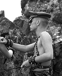 | Jim: Well, next we decided that we would have to invest in a better catalogue. The early catalogues were superseded by a pair of photographed catalogues, one featuring some of the clothing ranges, and the other showing some of the restraints and harnesses. |