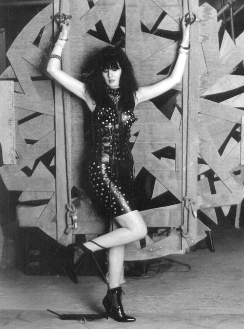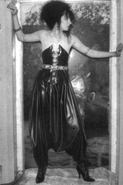 Their philosophy has always been “clothing for those who like to live dangerously.” The clothes used in the photos here are just a few of Tentacle’s many designs, taken from their latest catalogue. Unfortunately we are not able to show more, mainly due to the fact that most of Tentacle’s clothes are made to order, so they tend not to have many spare items lying around. The two models eagerly disappeared to get changed, while we proceeded with the interview.
